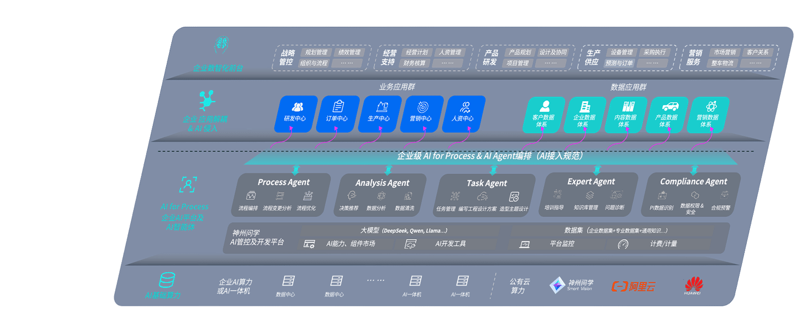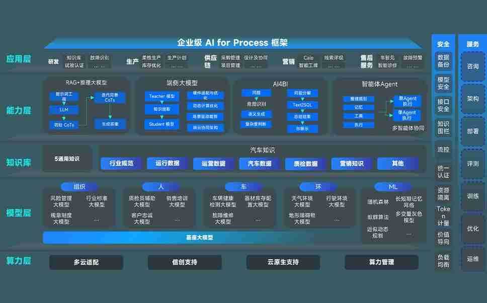 端到端的一站式AI工作空间深度融合了从企业战略规划到日常经营的全流程业务板块,,,,定向解决车企内部领域多、、、、部门多、、、链条长、、、、场景碎片化等难题,,,,支持车企快速构建以AI为核心的生产力写作体系,,,实现任务执行与AI能力的无缝集成与交互